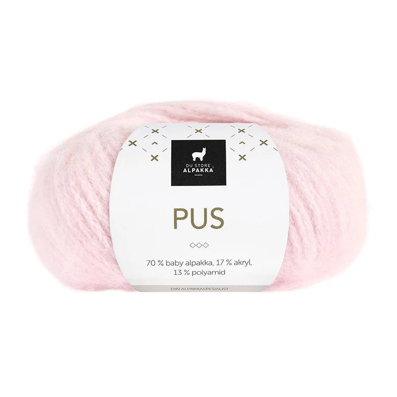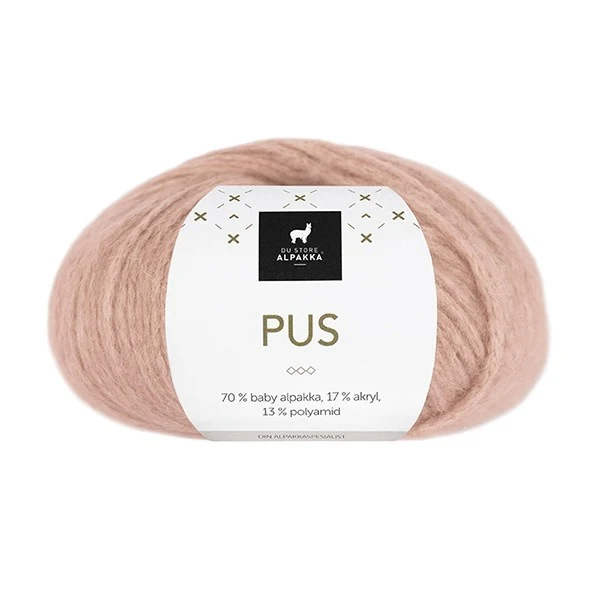 Du Store Alpakka Pus on pehmeä ja kevyt lanka, joka on valmistettu 70% baby alpakasta, 17% akryylistä ja 13% polyamidista. Lanka on kaapelikehrätty ja pinta on hienosti harjattu. Se voidaan pestä 30 asteessa pesukoneessa, ja sitä on saatavilla yli 30 eri värissä.