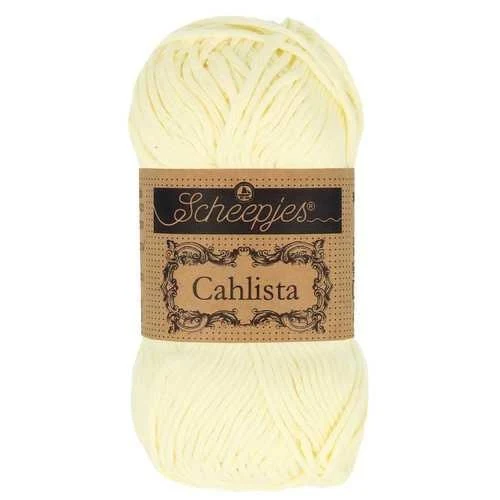 Scheepjesin Cahlista on 8/8 lanka 100 % puuvillaa.