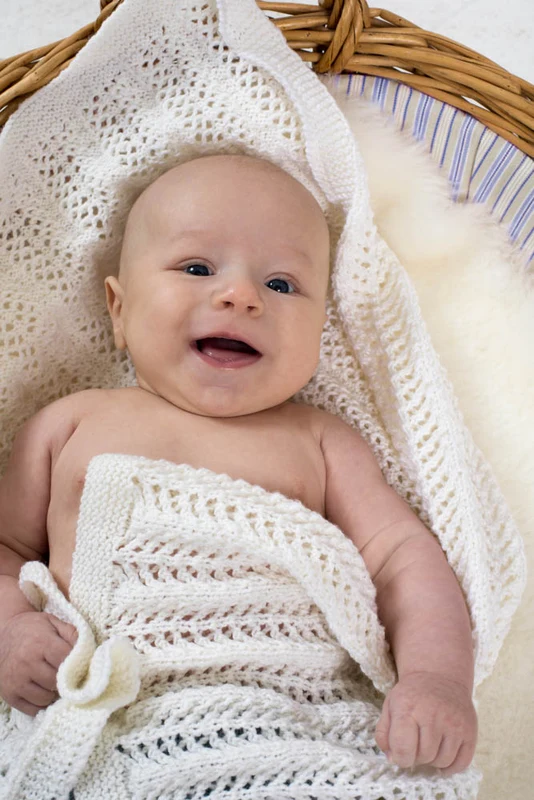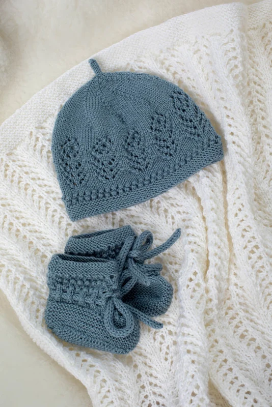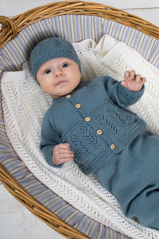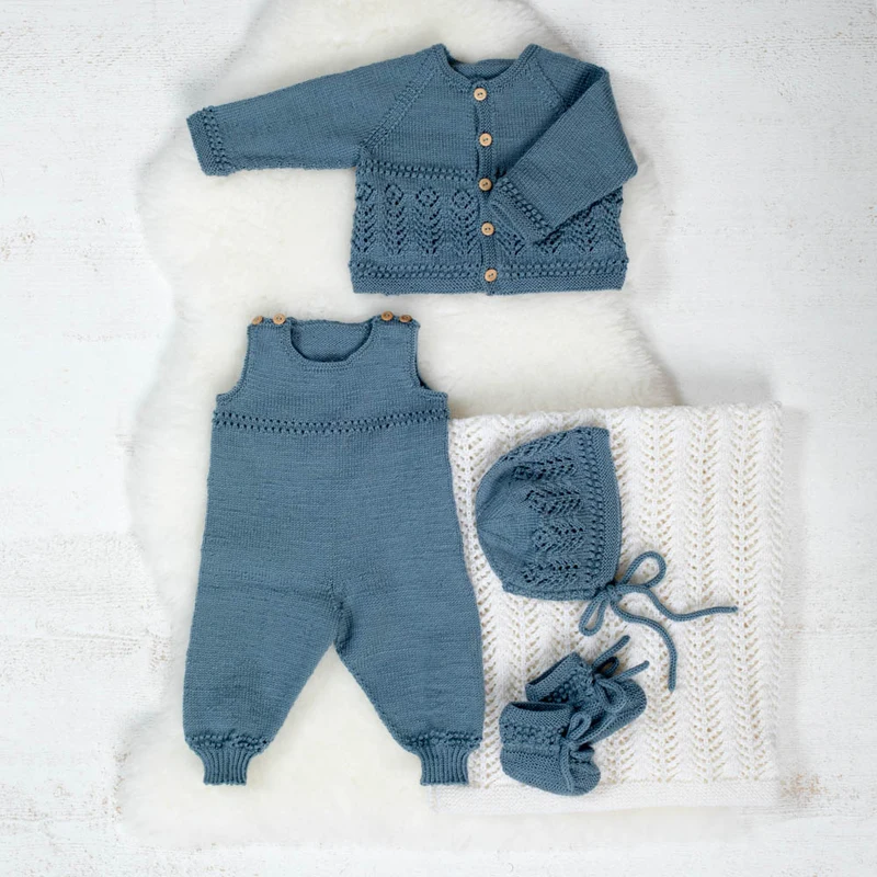 Vauvan setti ja vauvanpeitto neulottu Dale Baby Wool -kankaasta. Str. 0-12 kuukautta