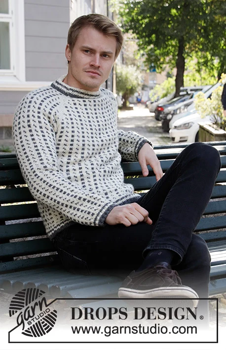 Neulottu pusero pohjoismaisella islantilaisella kuviolla ja raglanilla miesten DROPS Lima -langasta . Työ on neulottu ylhäältä alas. Koko S-XXXL.