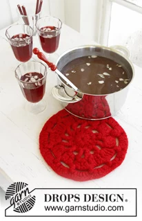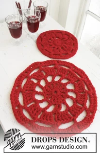 Virkattu ja huopa DROPS pöytäsuoja jouluksi ” DROPS Snow ” -langasta.