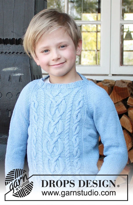 Lasten neulottu pusero raglanilla ja kierteillä DROPS Karisma- tai DROPS Lima -langoista . Koko 5-14 vuotta.