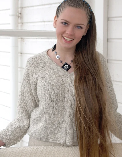 Pusero, jossa on paksu punos, on neulottu Du Store Alpacan BabySilk- ja Thin Alpaca -langasta. Vaihtoehto ohuelle alpakalle: hieno tai jokapäiväinen.