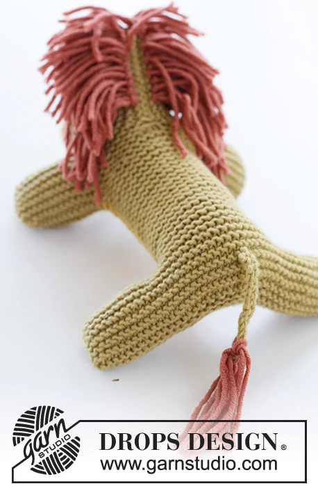 Ainaoikeinneulottu leijona DROPS Merino Extra Fine -langasta .
