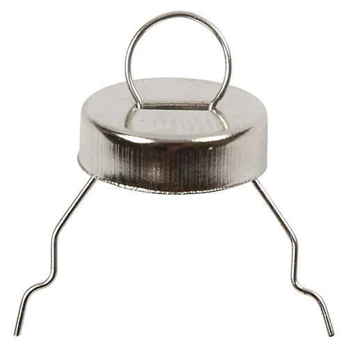 Jousitus hopeanväristä metallia kauluksella kiinnitettäväksi esineisiin, joissa on reikiä.
