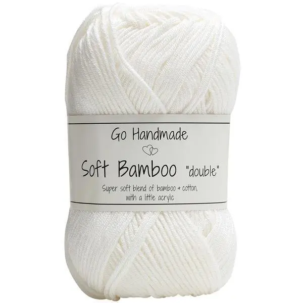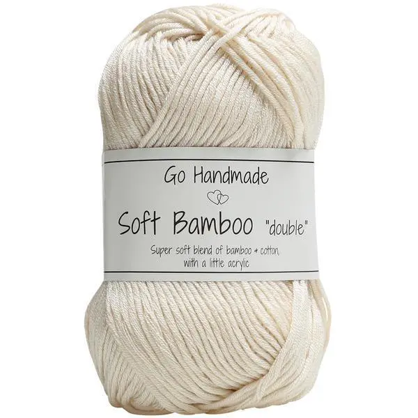 Go Handmade Soft Bamboo Double on paksumpi versio Go Handmade Soft Bamboo Fine -tuotteesta. Molemmat langat sisältävät samaa, 70 % bambuviskoosia, 23 % puuvillaa ja 7 % akryylia. Täydellinen yhdistelmä, jos haluat superpehmeää lankaa, se sopii erityisesti vauvan projekteihin. Pehmeyden lisäksi sisältö antaa kestävän langan, joka kestää myös pesukoneessa reissuun.