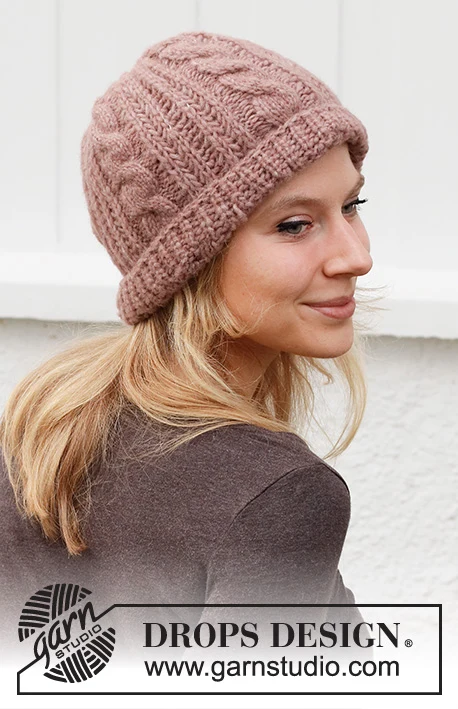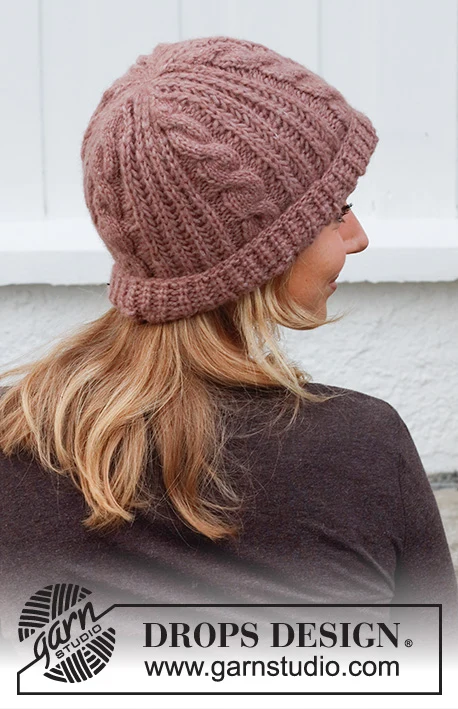 Neulottu hattu kierteillä ja täyspatentilla DROPS Air -langasta .