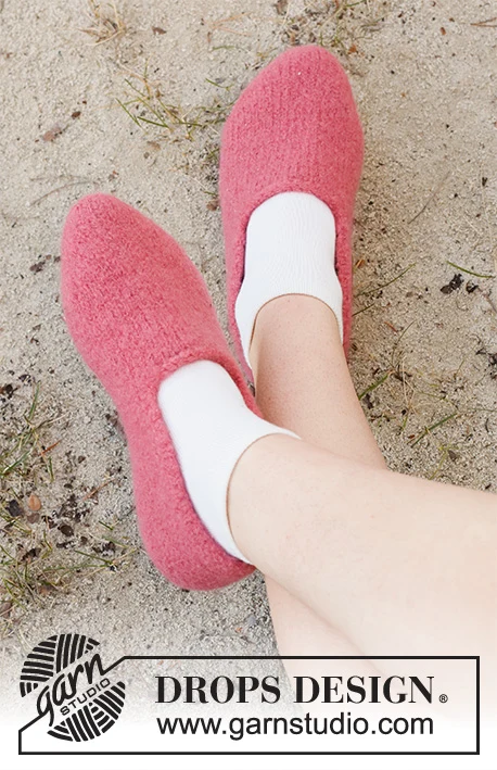 Neulotut ja huovutetut tossut DROPS Alaska -langasta . Koko 35-44.