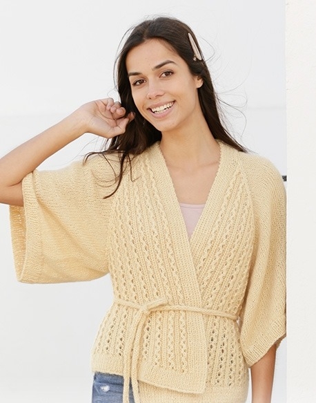 Tämän kesän neule- ja virkkaussuunnitteluun löytyy myös monia kauniita asioita, joita voit tehdä silkkilangasta tai sekalangasta, jossa on silkkilankoja. Voit neuloa esimerkiksi kesäisen kääretakin raglanilla , kesätakkin kuvioidulla kuviolla tai suloisen puseron pyöreällä kantokappaleella, jota on mukava käyttää kesän juhlatilaisuuksissa.