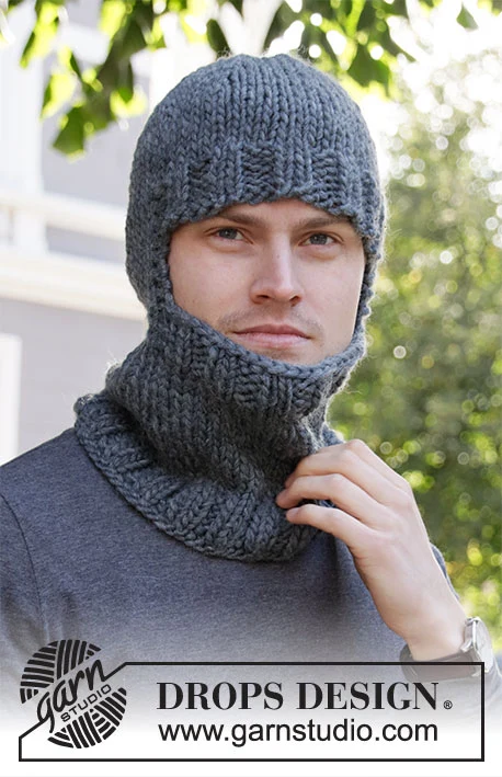 Miesten neulottu hattu / elefanttihattu DROPS Snow -langasta , jossa joustinneule ja pääntie. Koko S-XL