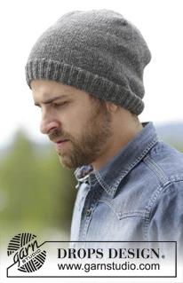 Neulottu DROPS hattu ” DROPS Lima ” -langasta sileää neuletta ja joustinneuletta.