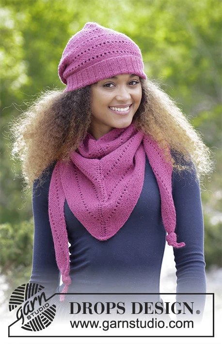 Setti sisältää: Neulottu hattu ja huivi ainaoikeaneuleella ja reikäkuviolla. Setti on neulottu DROPS Baby Merino -langasta