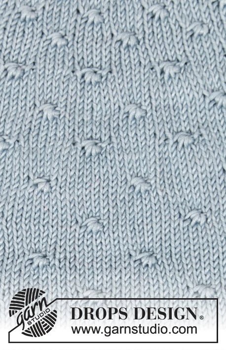 Ylhäältä alas neulottu mekko DROPS Muskat-langasta. Työssä on kaarroke, solmukuvioita ja lyhyet hihat. Koot S -XXXL.