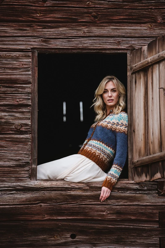 Islantilainen neuletakki, jossa kuvioneulottu tukikappale, neulottu Ístex Léttlopista . Koko XS-XXXXL.