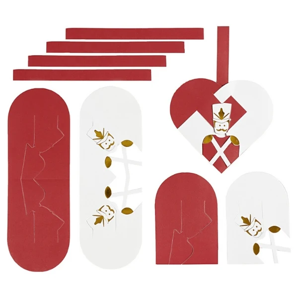 Jokainen setti sisältää 8 valkoista ja punaista arkkia, joissa on kultaisia folioyksityiskohtia.