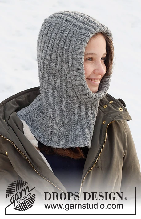 Neulottu hattu / elefanttihattu lapsille DROPS Limasta . Työ on neulottu strukturoidulla kuviolla, jonka reunat ovat joustinneuletta. Koko 2-12 vuotta.