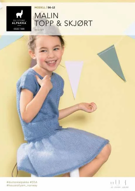Toppi ja hame on neulottu Du Store Alpaca Dreamline Air- ja Du Store Alpaca Dreamline Sky -langoista.