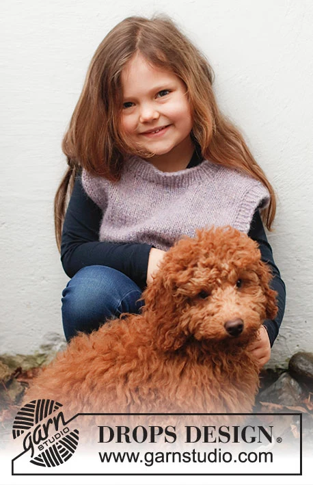 Neulottu lasten liivi DROPS Air -langasta. Työ neulotaan sileää neuletta joustinneuletta. Koko 3-12 vuotta.