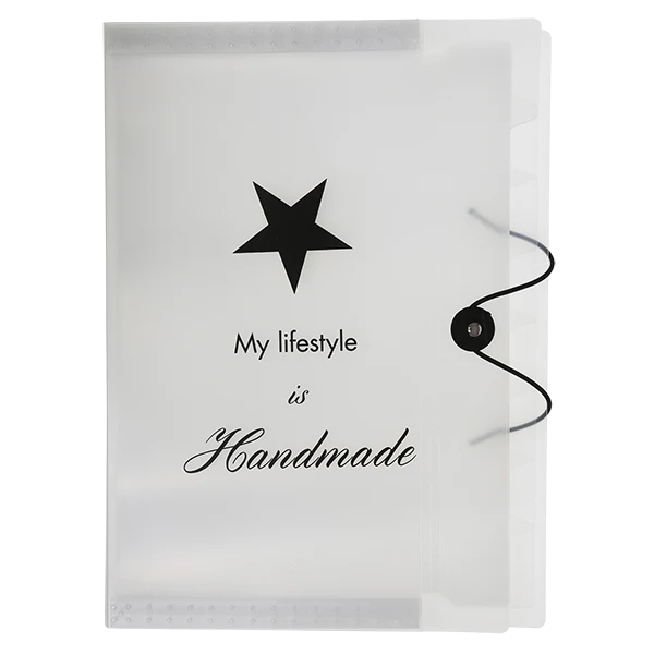 Älykäs säilytyskansio, jossa on 8 erilaista lokeroa, joihin mahtuu jopa A4-kokoisia arkkeja.
