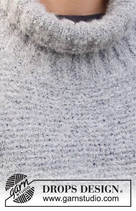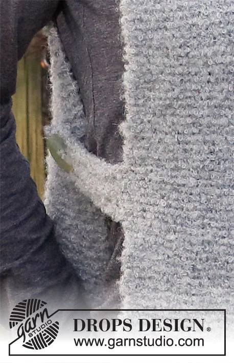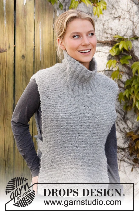 Neulottu liivi DROPS Alpaca Bouclé -langasta . työ on neulottu korkealla pääntiellä ja sivuilla aukeamalla. Koko S-XXXL