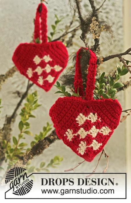 Virkattu sydän - joulukori 2 - lankasta DROPS Alpaca .