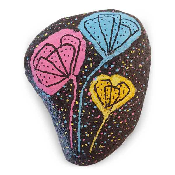 - Kun se on kuiva, ota ohut musta muste ja maalaa kukkien ääriviivat (ääriviivat). (pieni bonustieto: tee aina pariton määrä kukkia - se tekee koostumuksesta mielenkiintoisemman).
