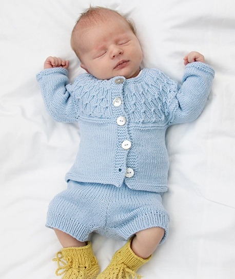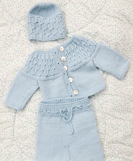 Aloita herkullisen setin neulominen vauvalle. Housut, neuletakki, hattu ja pieni vuori sisältyvät tähän. Koko setti on neulottu DROPS Baby Merino -langasta, joten voit halutessasi pysyä yhdessä värissä tai antaa sille kaasua leikkimällä useilla eri sävyillä. Sarja tulee ennenaikaisena 2 vuoden koossa.