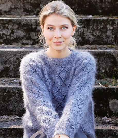 Frosted Leaves -paita on todella hieno esimerkki yksinkertaisesta reikäkuvioisesta puserosta, joka erottuu kauniisti DROPS Brushed Alpaca Silkin käytön ansiosta. Yksinkertainen kuvio pienillä lehdillä ja raglanilla on erittäin yksinkertainen, kun vain omaksut tekniikan, mutta se näyttää hurjan hyvältä. Tässä langan kaunis, paisunut tekstuuri saa todella erottua kauniisti. Pusero voidaan neuloa myös DROPS Kid-Silk -langasta , josta voit lukea lisää täältä