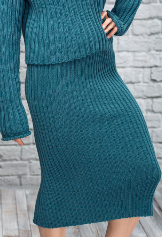 Jos haluat klassisen lookin, voit neuloa hameesi joustinneuletta. Tekniikka on helppo käyttää ja näyttää todella kauniilta.Katso tämä malli , joka sisältää pitkän ja tiukasti istuvan hameen, joka on neulottu joustinneuleella. Kaunis hame toimitetaan setissä, joten voit myös neuloa mukana tulevan puseron. Pusero on neulottu kuten hame joustinneulessa. Katso setti alla olevista kuvista.