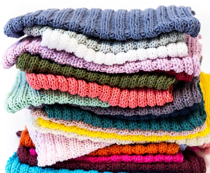 Voit myös neuloa pinon tiskipyyhkeitä ystävällesi. Kankaat ovat helppo, suoraviivainen ja edullinen neulontaprojekti, jolla pääset alkuun. Jos olet aloittelija neulemaailmassa, se on jopa ilmeinen projekti aloittaaksesi. Kankaat ovat suosittu neuleprojekti, mm. koska se on ympäristöystävällinen. Puuvillaneulotut liinat eivät eritä mikromuovia, ja lisäksi niitä voidaan käyttää uudelleen ja uudelleen.