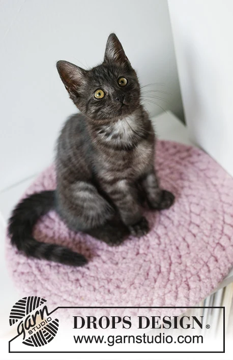 Virkattu ja huopahuopa kissalle 2 lankasta DROPS Snow . Työ on virkattu keskeltä ja ulos tähtikuviolla.
