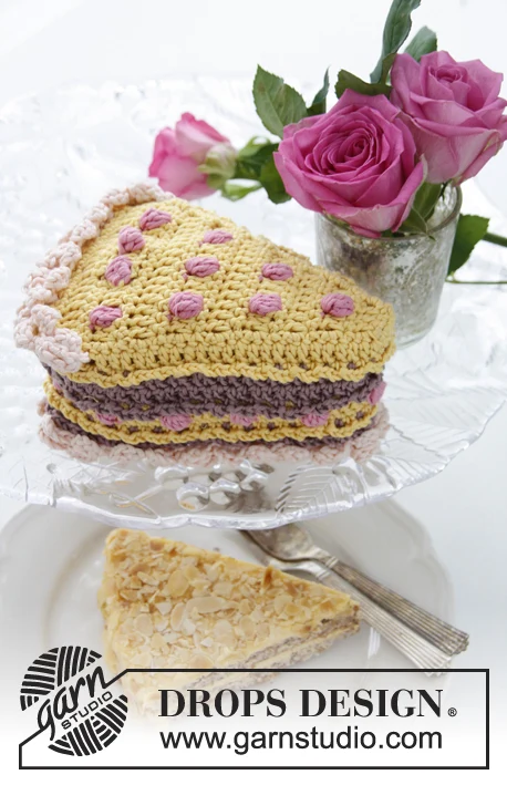 DROPS Valentine: Virkkaa DROPS-kakkupala " Pähkinäpähkinän "-langasta marjoilla ja kermalla