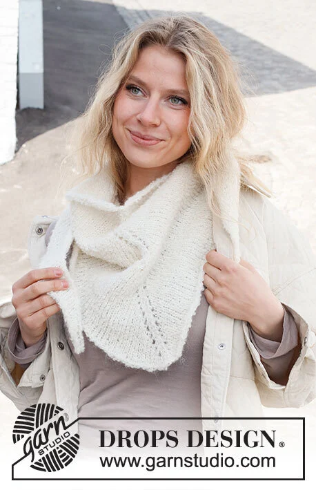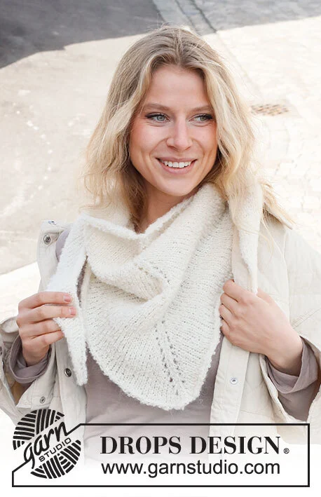 Neulottu huivi DROPS Alpaca Bouclé- ja DROPS Kid-Silk -langoista . Työ on neulottu ylhäältä alas.
