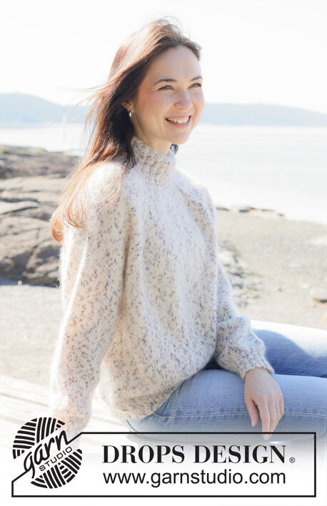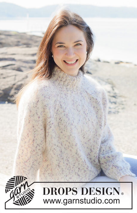 Ylhäältä alas neulottu pusero DROPS Fabel- ja DROPS Kid-Silk -langoista. Työssä on raglanlinjat ja kaksinkertainen pääntien reunus. Koot S-XXXL.