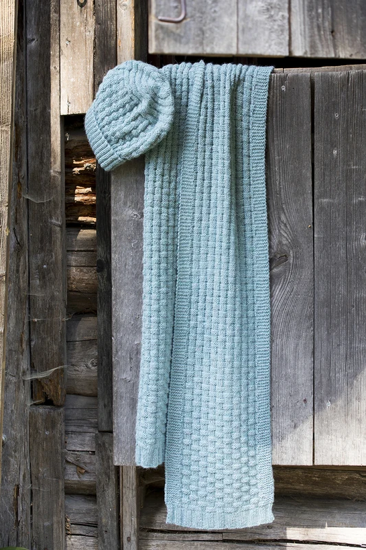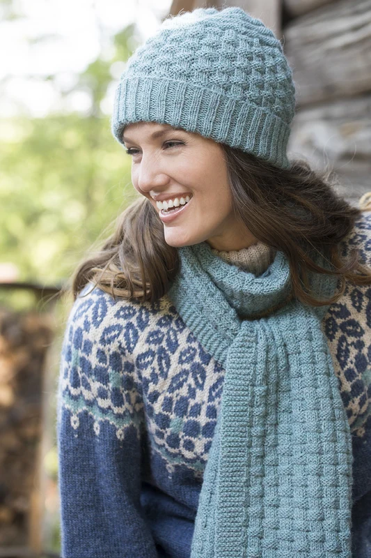 Neulottu hattu ja huivi Dale Alpaca Forte -langasta . Yksi koko.