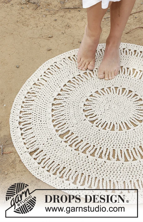 Pyöreä matto tankopistoilla ja reikäkuviolla, virkattu 3 langasta DROPS Paris