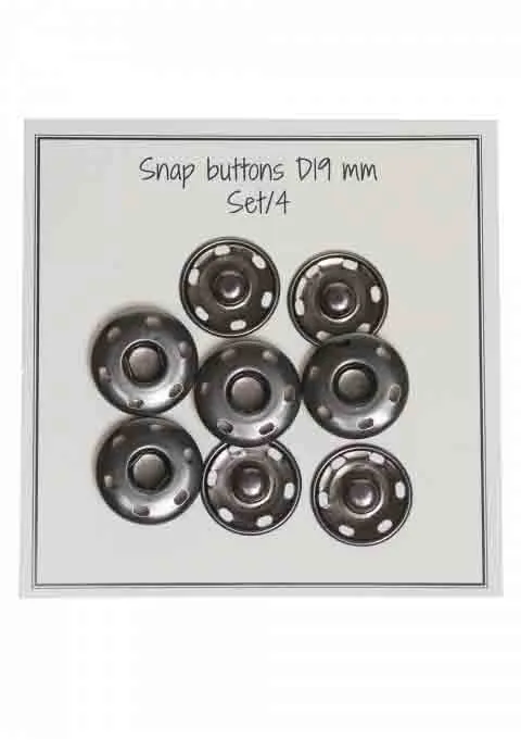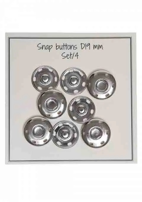 4 kpl. painonapit, jotka on helppo ommella laukkuihin, kukkaroihin ja vastaaviin. Painikkeiden halkaisija on 19 mm ja niitä on saatavana kolmessa eri värissä.