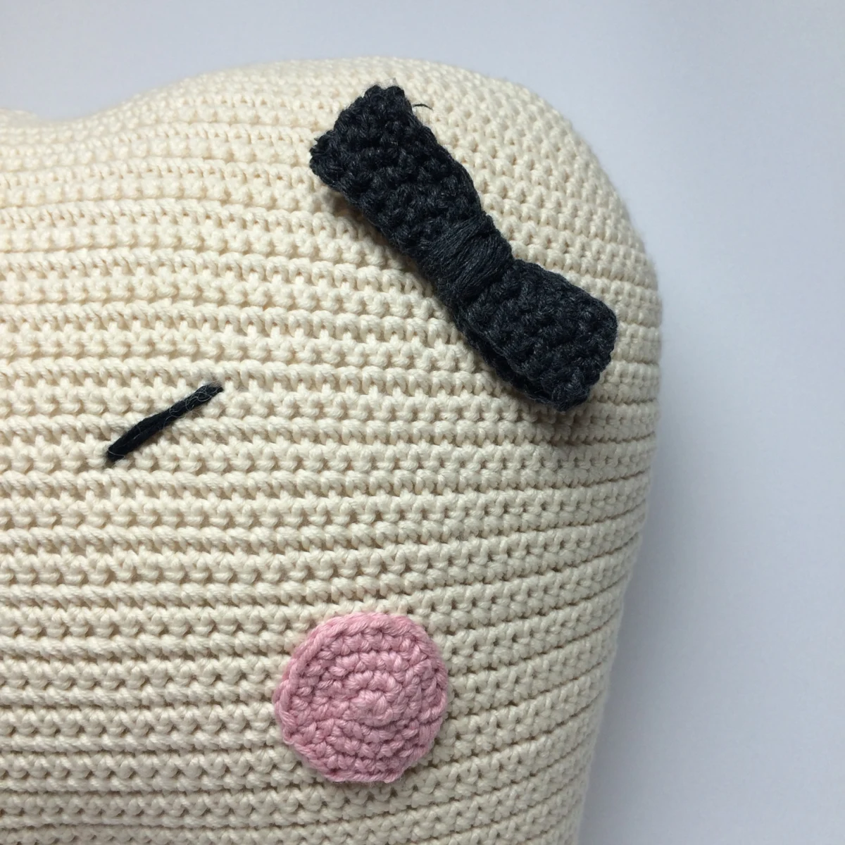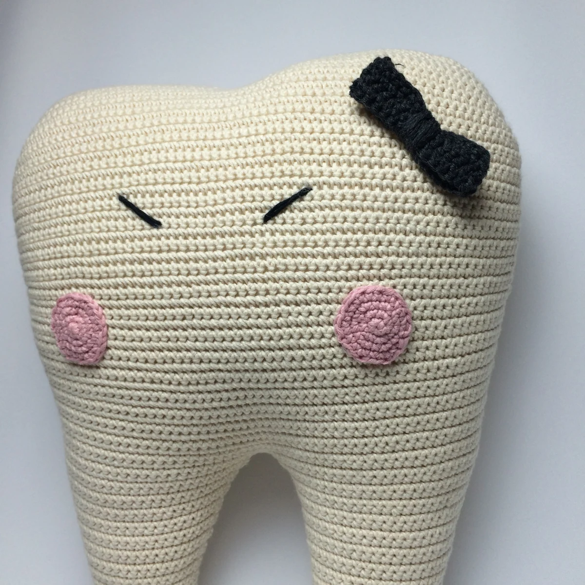 Tuote: Yksityiskohtainen virkkauskuvio tyynyssä Little Tooth. Hammastyyny on n. 30 cm korkea.