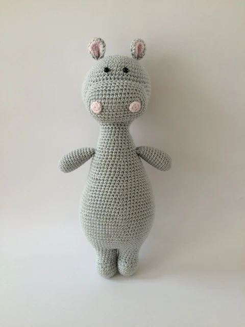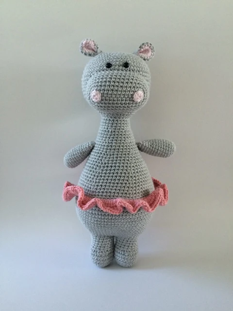 Yksityiskohtainen virkkauskuvio Oda Flodhoppelle. Mukana on lisäys Odan balettihameen reseptiin. Oda Flodhoppe on n. 30 cm korkea.