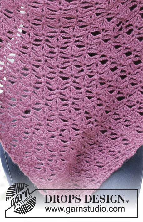 Viuhkakuvioinen huivi, virkattu kärjestä ylöspäin. Työ on virkattu DROPS Air -langasta