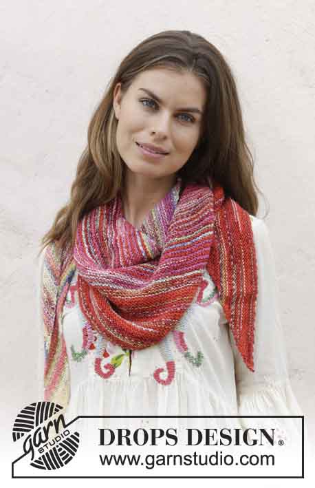 Huivi ainaoikeaa. Työ on neulottu DROPS Fabel Print -langasta.