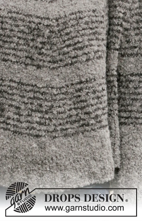 Neulottu ponchopusero DROPS Alpaca Bouclé -langasta . Työ on neulottu ylhäältä alas pyöreällä tukikappaleella ja raidoilla. Koko S-XXXL.