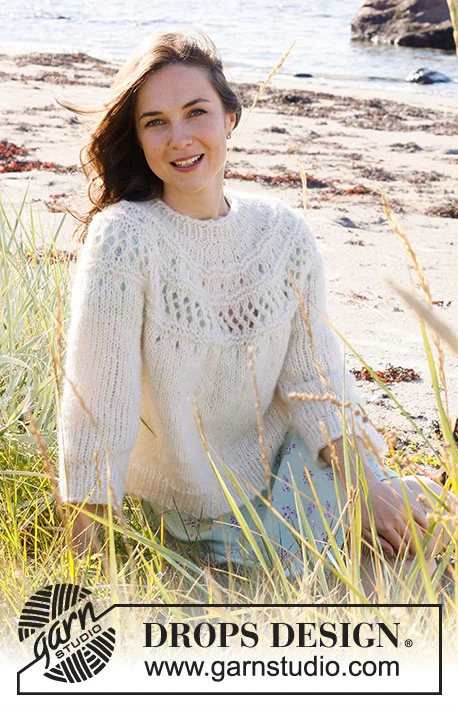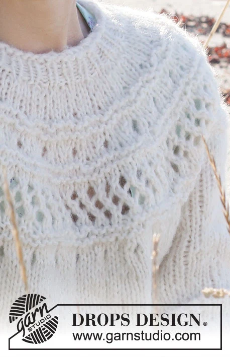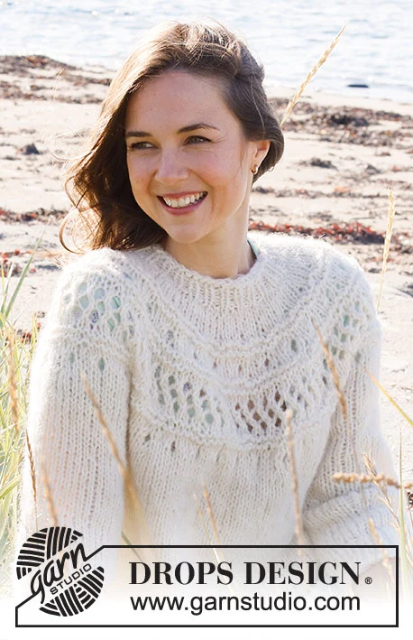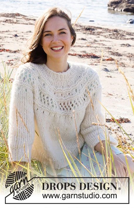 Neulottu pusero 1 langasta Wish . Työ neulotaan ylhäältä alas pyöreällä tukikappaleella, reikäkuviolla, ainaoikeaa ja ¾ pitkillä hihoilla. Koko S-XXXL.