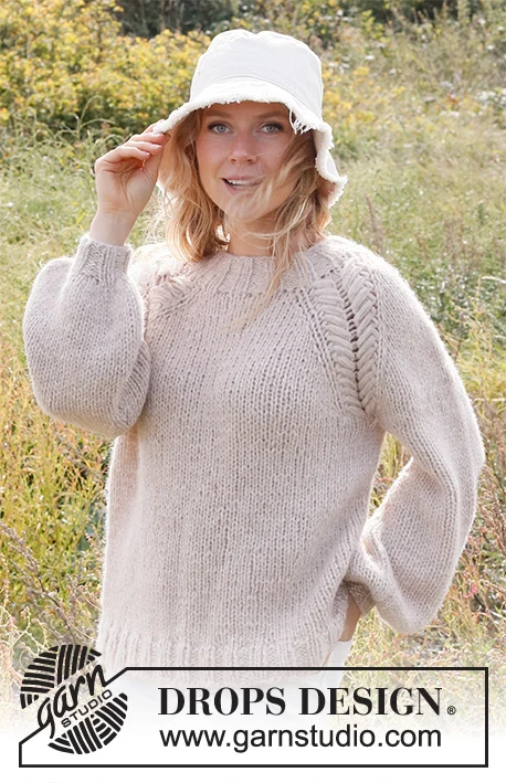 Neulottu pusero 1-langaisesta DROPS Wish -langasta. Työ on neulottu ylhäältä alas raglanilla ja kierteillä. Koko S-XXXL.