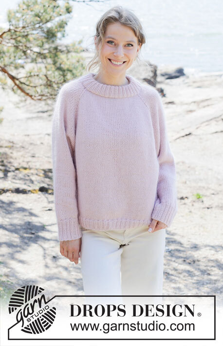 Ylhäältä alas neulottu pusero DROPS Daisy- ja DROPS Kid-Silk -langoista tai DROPS Merino Extra Fine- ja DROPS Kid-Silk -langoista. Työssä on raglanlinjat ja kaksinkertainen pääntien reunus. Koot XS - XXL.