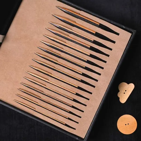 Setti sisältää 8 paria vaihdettavia tikkuja eri kokoisina yhdistettynä mustana ja luonnonvärisenä