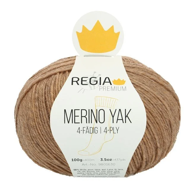 Regian Merino Yak on ylellinen sukkalanka, joka koostuu 58% villasta, 28% polyamidista ja 14% jakki-villasta. Yhdistelmä tavallista villaa ja eksklusiivista jakki-villaa tekee langasta lämpimän ja pehmeän. 28% polyamidi tekee langasta kestävän, joten voit nauttia itse neulomistasi vaatteista pitkään. Lanka myydään 100 gramman vyyhdissä, ja yksi vyyhti riittää kahteen sukkaan tavallisissa aikuisten ko'oissa. Sukkien lisäksi lanka sopii myös lastenvaatteisiin tai puseroihin - ja sen voi pestä koneessa 30 asteessa hienopesuohjelmalla.