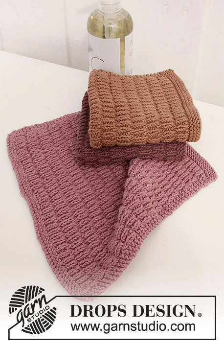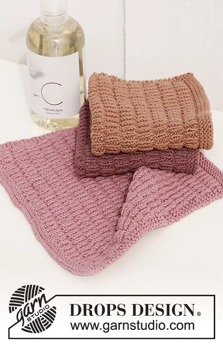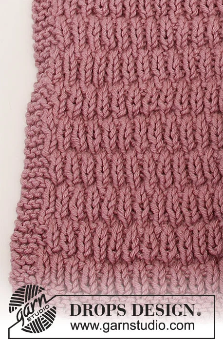 Neulotut kuviolliset kankaat DROPS Safran -langasta . Työ on neulottu edestakaisin.