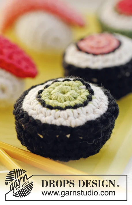 Virkattu sushi ja maki wasabilla DROPS Paris -langasta .