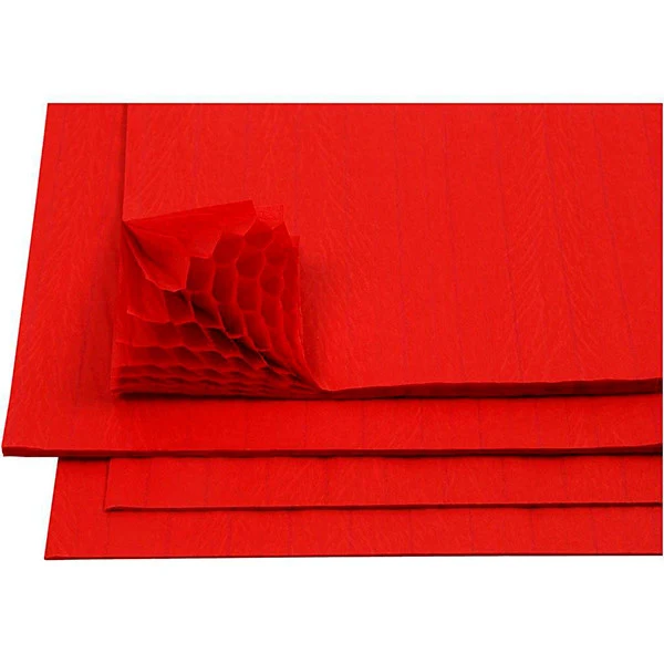 Ohut pehmopaperi, joka on liimattu yhteen 30 kerrokseksi ja joka voidaan avata hienoksi kolmiulotteiseksi kuvioksi.